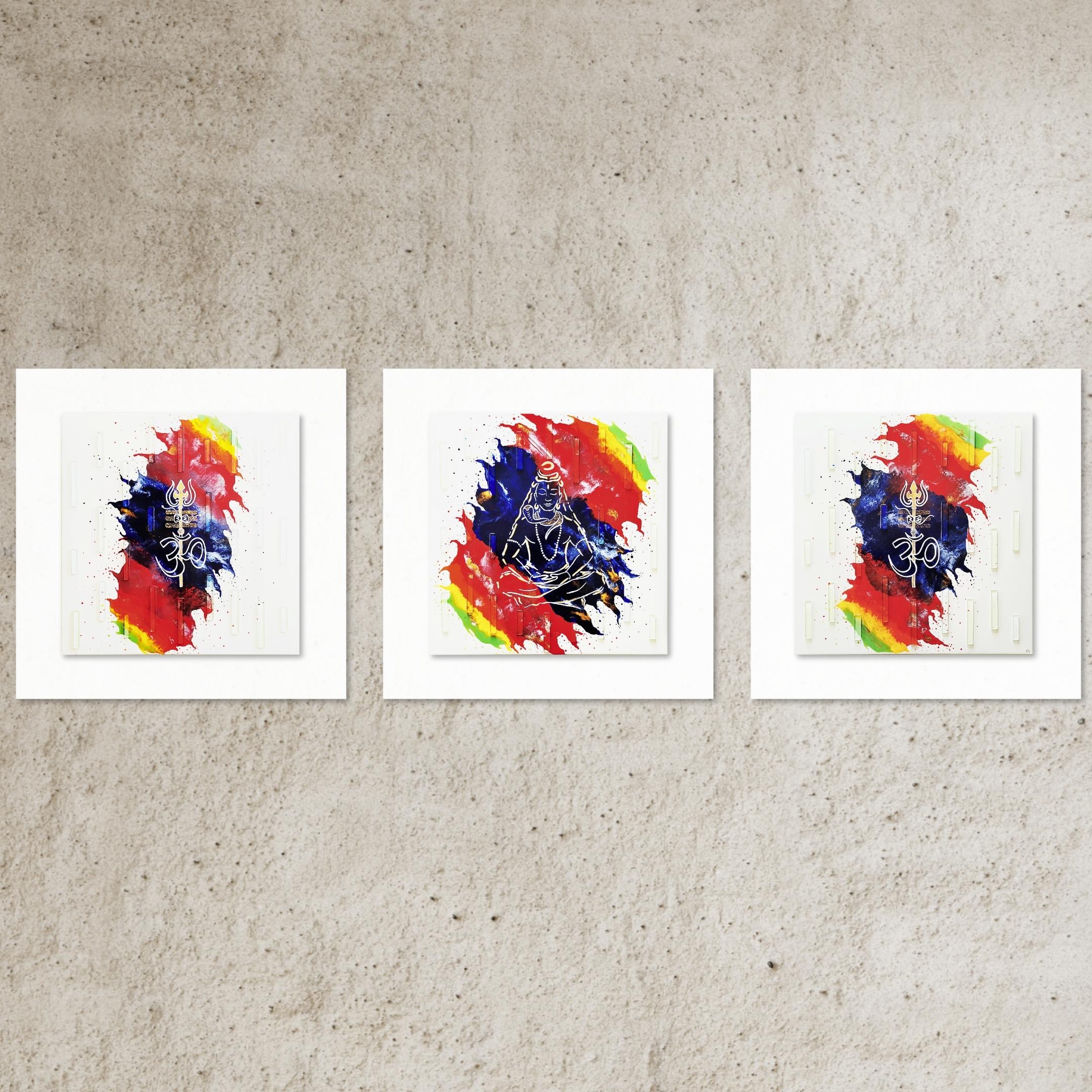 S43 – Colourful Aum Trishul Shiva – Set of 3
